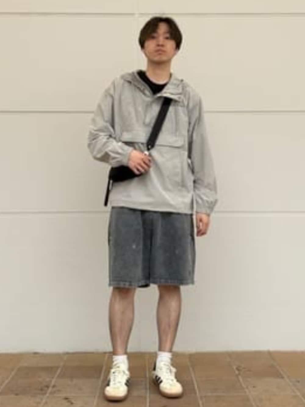 テック系ファッション🔥 スポーティな印象のナイロンジャケットにハーフパンツを合わせました! アウトドア系でありつつアーバンな雰囲気も持ち合わせます😄