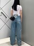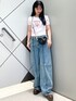 GUESSXNMIXX アイテムのコーディネートです☺︎ 定番のロゴプリントのTシャツはウエストのラインが調整できる紐が腰あたりについています!シンプルですがアレンジ次第でいろんなパターンで着ることが出来そうです☺️ デニムパンツは全体的にボリュームのあるシルエットとフリンジでラインが入っている珍しいデザインです👖 コーディネートのポイントになるハートのミニバックは持っているだけでかわいいのでオススメです🙂✨