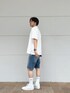 夏のストリートコーデ! ナチュラルな雰囲気を醸し出すストライプ柄のニットシャツになっております! ハーフパンツなので風通しが良く、涼しく過ごせるところが魅力です😄