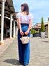 夏コーデ White×デニムの定番スタイル ビジューの付いたカゴバックが定番コーデを華やかに見せてくれます!