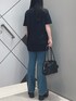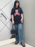 インパクト大なデザインのTシャツは着丈が長いのでロングパンツだけでなくショートパンツと合わせるのもオススメです✨プリントだけでなくストーンなどが付いている他にはないデザインです♪ 光沢のある生地がコーディネートのアクセントになるハンドバッグはトレンド感のある長めのハンドルや丸みのあるシルエットがポイントです👜 マチと間口が広いので使いやすいデザインです☺︎