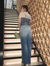 NMIXXタイアップ商品です°・*:.。.☆ 夏にピッタリの薄い素材のシャツは チューブトップとのオールインワンです デニム柄でとても可愛いですよ. 𓂃 ଓ ․ 𓈒 デニムはグラデーションで ワイドなのでとても足が綺麗に見えます!