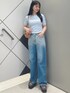 薄手のニット素材のトップスはキラキラのロゴが散りばめられていてコーディネートのポイントに♪ほどよいフィット感で細見えするシルエットです☺︎ グラデーションが珍しいデニムはワイドシルエットでゆったり履けます👖✨ 2WAYで使えるハンドバッグはステッチデザインがポイントです!シンプルなのでどんなコーディネートにも合わせやすいです♪