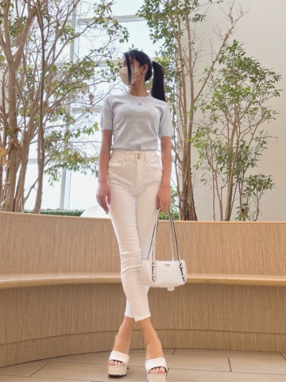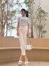 GUESS JAPAN(GUESS JAPAN)のニット/セーター「ROSIE 4G Rn Ss Sweater 半袖ニット セーター レディース」を使ったコーディネート