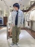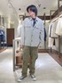 長袖ですが薄手なので 少し肌寒い時に着ることができます! 下のパンツはカーゴパンツ ですが太すぎるシルエットでは ないのでスタイリングしやすいです!