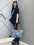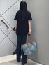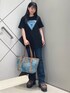 ロゴがデニム生地になっているTシャツはほどよいストレッチとルーズフィットでノンストレスで着ていただけます♪着丈は長めなのでボトムに入れて着るのもおすすめです☺︎ シーズンレスカラーのデニムもストレッチがきいていて柔らかい生地で着心地も良いです✨ 大容量なトートバッグは中が整理整頓しやすい仕切りやファスナーポケットが付いています!デニム風なカラーがコーディネートのポイントになります◎