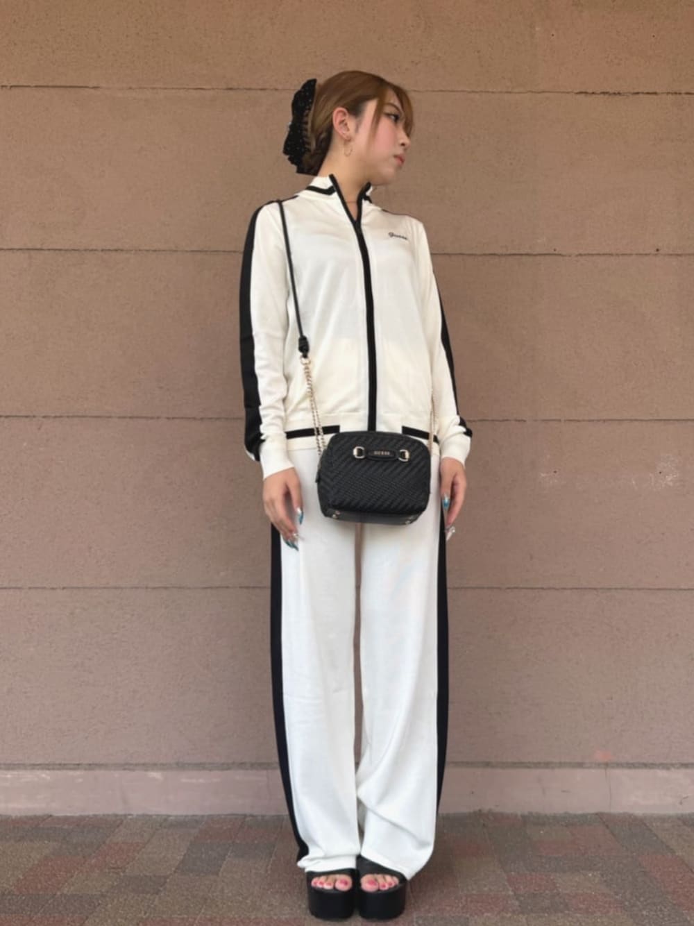 GUESS JAPAN(GUESS JAPAN)のショルダーバッグ「ECO Rianee Satchel サッチェル」を使ったコーディネート