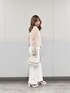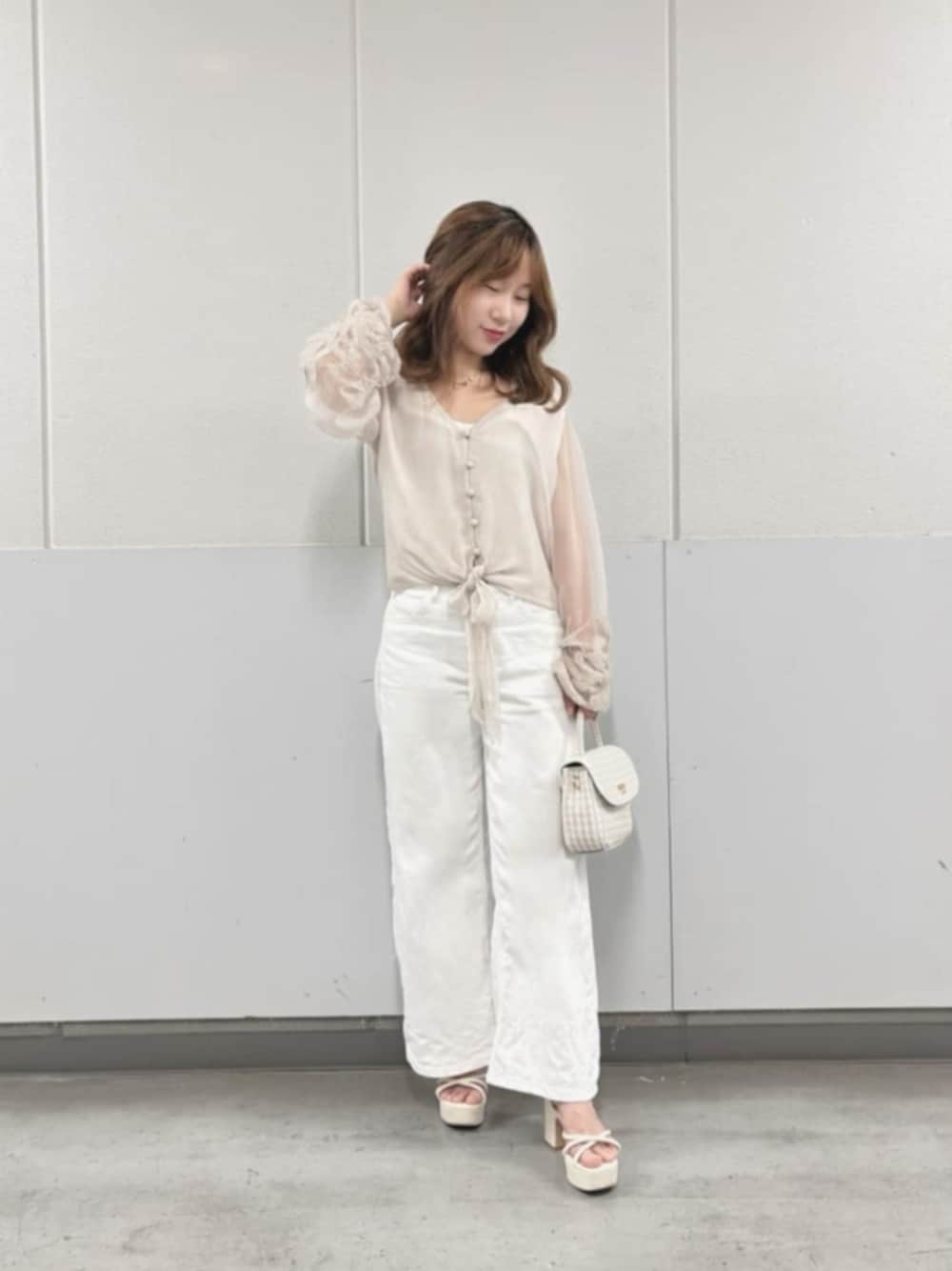 薄いピンクのトップスは、大人っぽさと優しさを引き立て、Vネックのデザインがほんのりとしたセクシーさを添えています(╹◡╹) ホワイトのデニムはどんなトップスにも合います^_^ バッグは斜め掛けのストラップが付いていて、二つ折りの財布やiPhone Pro Maxなど大きなスマホも収納できます( ^∀^)