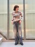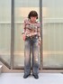 トップス(Mサイズ) →シアーの素材感がより女性らしさを演出してくれます🩷 裾はアシメになっており紐でギャザーを作ることもできるので、 シルエットの変化も楽しめます✨ アウターのインナーとしても使えること間違いなしです! パンツ(27inch) → ワイドめですがストレートシルエットなので脚のラインが綺麗に見えます✨ 太ももから同じ太さなので裾はロールアップしても⭕️ ダメージはプリントで遊び心あって可愛いです🩷 生地はとても柔らかいですよ🎵