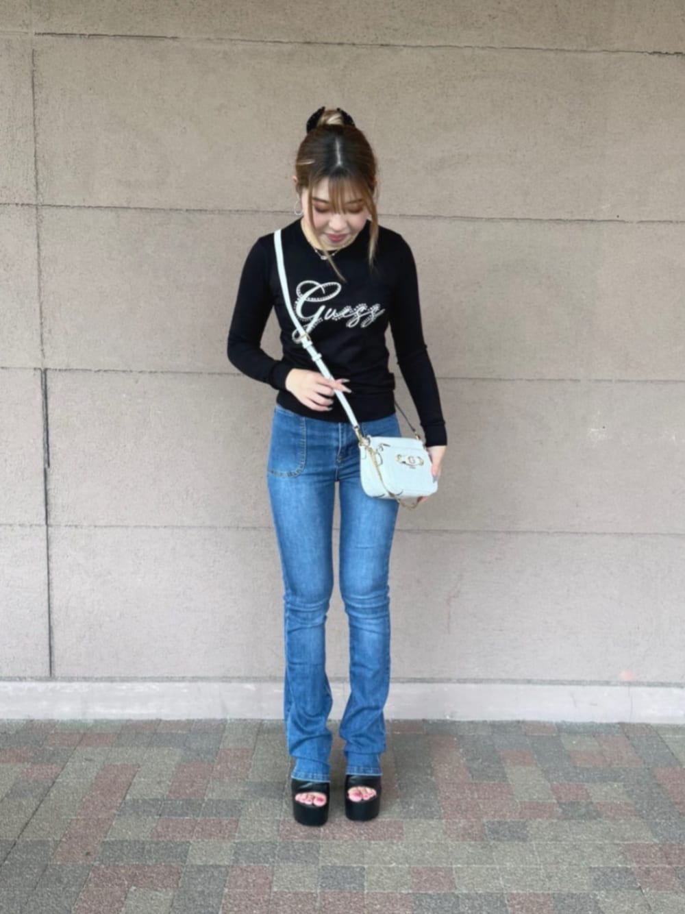GUESS JAPAN(GUESS JAPAN)のショルダーバッグ「IZZY PEONY Double Pouch Xbody クロスボディバッグ レディース」を使ったコーディネート