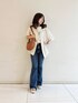 GUESS JAPAN(GUESS JAPAN)のデニムパンツ「M-Tone Flare Brush Cut Denim Pants デニムパンツ ジーンズ レディース」を使ったコーディネート