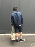 デニムセットアップコーデ! パンツはハーフパンツですが ワイドなシルエットでは 無いため大人カジュアルな雰囲気に コーデを組めます!