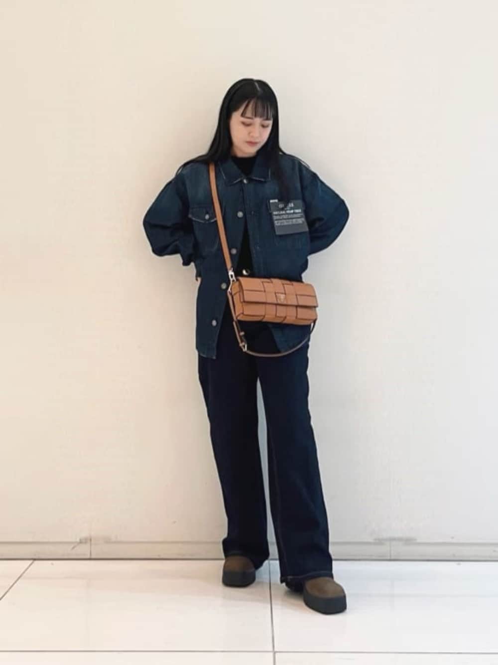 デニムジャケットは軽く柔らかな着心地の良い素材です!身幅が広くと腕周りも太めなので、オーバーサイズのトレーナーやニットと合わせるのもおすすめです♪ インナーには透かし編みが特徴的なクルーネックのショートスリーブニットを着用しています☺︎ ややフィット感のあるシルエットなのでメンズアイテムと合わせてメリハリのあるコーディネートもおすすめです!シーズンレスな万能トップスです✨ トレンドの横長なシルエットがポイントなバックは 2種類のストラップで手持ちとショルダーをその日のコーディネートに合わせて使う事ができます♪広めな間口と内側のポケットで小さいながらも使い勝手も良いデザインです☺︎