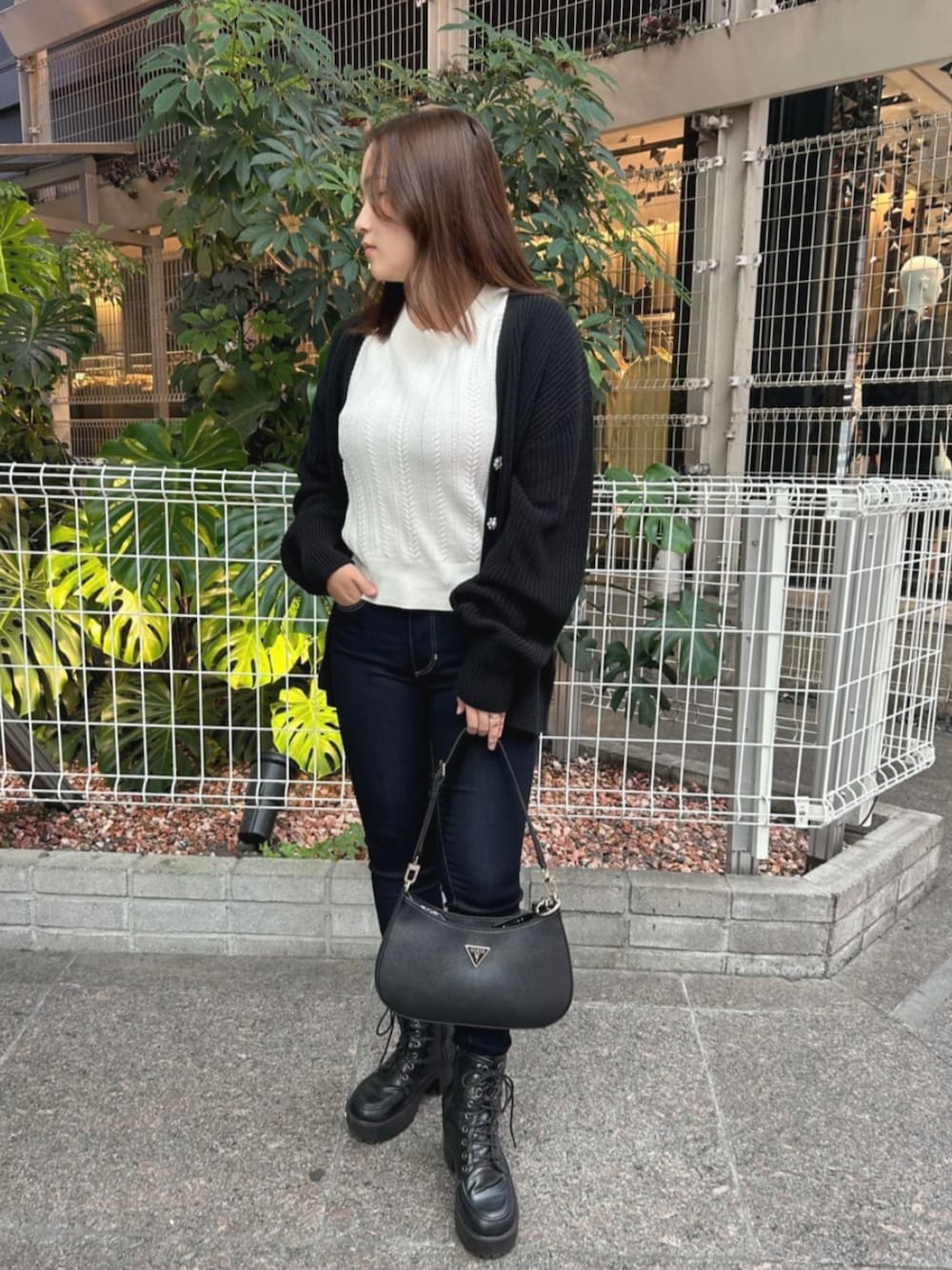 Tops 𓈊ˊ˗ ニットの半袖トップスに ニットカーディガンを合わせていますꪔ̤̮ 半袖トップスは 着心地肌触りがとても気持ちよくて暖かい 秋にピッタリの1枚です⋆͛⇢ カーディガンはシンプルなオーバーアイテムですが 前のボタンは4つ全て種類が変わって 付属の予備ボタンも4つとは違うものになっていますよ‧⁺ ⊹˚. Denim𓈊ˊ˗ ストレッチ抜群のスキニータイプ⚐˒˒ とても履きやすく 足が細〜く見えます ハイウエストでボタンはふたつですがストレッチがよく効くので苦しくなく何にでも合わせやすいものになっています✿ܓ Bag𓈊ˊ˗ 大人気!! シンプルなハンドバッグ✦.* 一見シンプルですがシンプルイズベスト!!! 中の容量もあって形が可愛いので店舗では大人気アイテムになっています⋆.˚ ᡣ𐭩 .𖥔˚