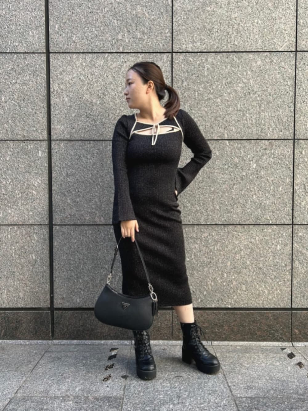 Dress𓂃꙳⋆ 胸元オープンカットのキラキラタイトドレスです໒꒱ 袖はフリルで黒なのでスタイルもとっっっても良く見えますෆ キラキラの生地は可愛さもあり綺麗さもあります⋆.˚ ᡣ𐭩 .𖥔˚ Bag𓂃꙳⋆ シンプルなハンドバッグです コンパクトながら容量はしっかりあって 使いやすい商品です𓈊ˊ˗
