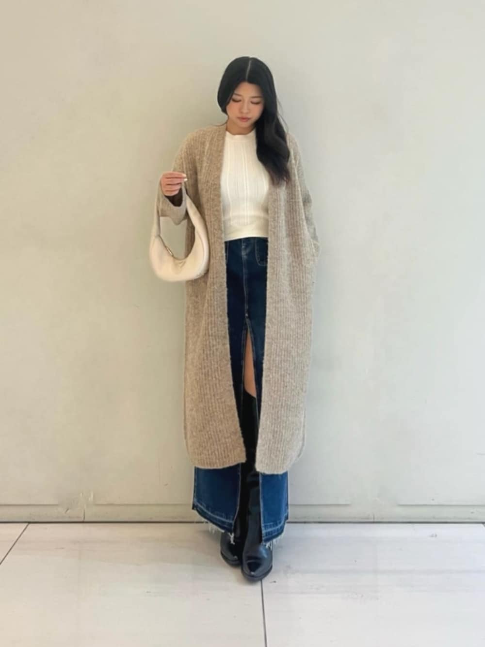 長めの丈感でゆったりとした着こなせるロングカーディガン♪♪ インナーを選ばず重ねやすいのも嬉しいポイントです✨ 前開きデザインでさらっと羽織るので、こなれ感が生まれ、ロングスカートやデニムと合わせたスタイルがオススメです💖 シンプルながら表情のあるニット素材が、コーディネートにさりげないニュアンスを添えてくれます♪♪