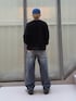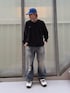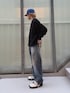 シンプルなブラックニットを主役にした、ストリートベーシックなスタイリング。程よくルーズなシルエットでゆったりとした雰囲気ながらも全体がすっきりと見えるバランス感。 ニット特有の柔らかい風合いが上品さをプラスし、胸元のシンプルなロゴだけで、厚みもほどよく、季節の変わり目から冬場まで活躍する万能な一着です。 パンツにはヴィンテージ感のあるデザインをそのままプリントした珍しいデニムになってます。ルーズなシルエットだが太過ぎず綺麗見えもするコーディネートになってます。 パンツで少しアクセントを入れることでシンプルなトップスでも周りと差が出る、コーディネートを組めます。 キャップで差し色として取り入れ、落ち着いたトーンの中に遊び心をプラス。