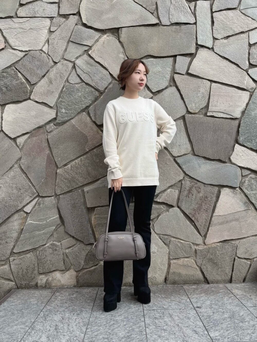 セーターはシンプルなデザインで、どんなコーデにも合わせやすい一枚✨ デニムはフレアシルエットで美脚効果バツグン! ストレッチ素材だから動きやすさも◎です🙆♀️ バッグは収納力たっぷりで、長財布もすっぽり入ります👜 カラバリも豊富なので、お気に入りがきっと見つかりますよ♪ ぜひチェックしてみてください👀💕