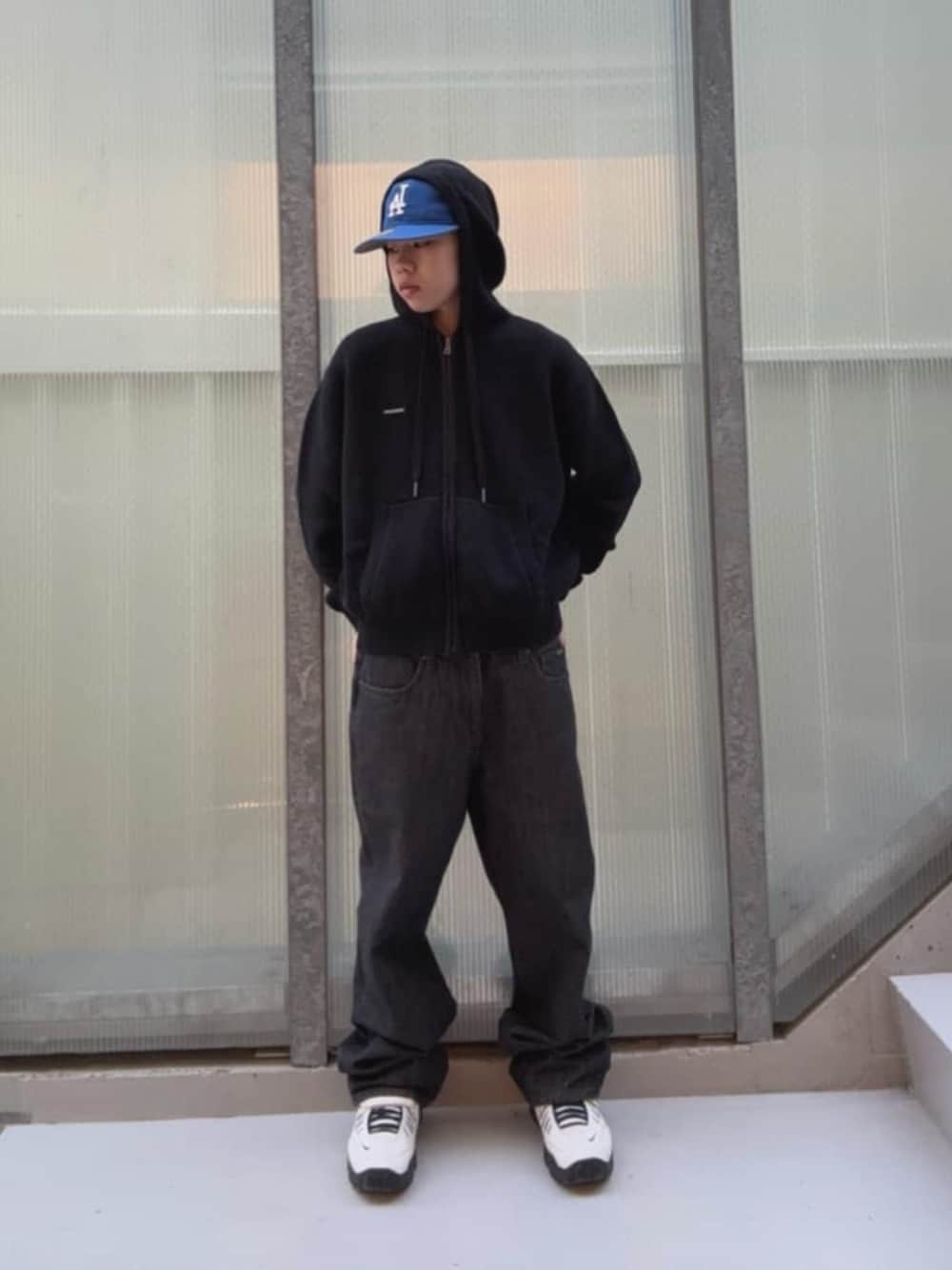 ニット素材のフーディーを主役にした、モノトーンでまとめた洗練ストリートスタイル。ニットならではの柔らかい質感と落ち感が特徴で、フーディーでありながら上品さのあるコーデ。程よくゆったりとしたシルエットが抜け感を生み、動きのあるシルエットがスタイリング全体を軽やかに見せてくれる一着。胸元の控えめなロゴが、ミニマルな中にアクセントを添えています。 ボトムスにはワイドシルエットのブラックデニムを合わせ、全体をトーンで統一。ニットの柔らかさとデニムの無骨さが絶妙にマッチし、カジュアルすぎないバランスに。 ニット素材で上品さを感じつつ、パンツや小物の合わせるものでストリート感も演出できるアイテムです。 今からの時期に最適です! ニットフーディーは店頭でも購入できるので、気になる方は是非お越しください。