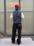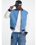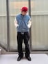 デニムと腕の切り替えが印象的なGUESSのスタジャンを主役にした、アメカジライクなストリートスタイル。 ヴィンテージ感のあるブルーデニムにホワイトスリーブを合わせたことで、程よくクラシックで存在感のある仕上がりに。背面の大きなロゴ刺繍がアクセントとなり、シンプルながらもバックスタイルでしっかり個性を主張してくれます。 パンツは太めのシルエットでルーズにまとめることで、上品さとストリート感のバランスを絶妙に保っています。 足元にはブラックのレザーシューズをチョイスし、カジュアルなコーディネートを引き締め、赤のキャップをプラスすることで、全体に統一感と抜け感をプラス。 トーンを抑えたコーデに差し色を効かせることで、シンプルながらもこなれた印象に仕上げています。