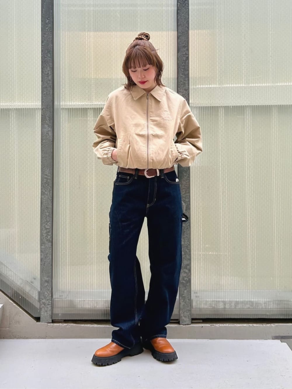 アウター(Sサイズ) →ハリ感のある生地でシルエットが綺麗です✨ ショート丈なのでボトムスとのバランスも取りやすいです⭕️ 袖もゆとりがあるので重ね着しやすいです👍🏻 デニム(29inch) →メンズのデニムです! カーペンターのデザインがコーデのアクセントになります🎵 ストレートシルエットで脚のラインが綺麗に見えます✨ 少しゆるっと履きたかったのでワンサイズ上げてます!