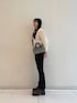 アウターはボア素材と腕のフェイクレザーの組み合わせになっています!着丈は長くないですが、身幅があるので厚手のインナーも一緒に着ていただけます✨ ロゴもシンプルでデザインと配色で大人の方にもオススメなデザインです!! インナーには透かし編みが特徴的なクルーネックのニットを着用しています☺︎ニット地なのでこれからの季節におすすめのトップスです♪ フレアデニムはベーシックアイテムとして重宝するブラックカラーです!幅広いコーディネートで使えるシルエットです!レングスはあまり長くないので、スニーカーや高さのない靴とも合わせやすいです♪ トートバッグはロゴ入りのショルダーストラップ付きで2WAYで使えます♪ショルダーに付いてるミニポーチとバックインバックで小さいながらも機能性も高いです👜