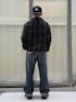ブラック基調のチェックジャケットを主役にした、大人っぽさとストリート感を両立したコーデ。 ジャケットは、黒ベースに控えめなチェック柄が入っていることでシンプルすぎず派手にも見えない絶妙なバランス。ダブルジップなので下だけ開けたり全部閉めたり、気分によって着こなせる万能アイテムです。 パンツはビンテージ感のある濃いめのワイドデニムを合わせていて、全体のコーデを暗めにしてみました。裾の溜まり方も程よく、全体にリラックスした空気感をプラス。 デニム特有の硬さがなく動きやすいパンツになってます。 足元はブラックのスニーカーで締めて、全体の統一感を保ちつつストリートらしさも残しているのがポイント。 ローファー等で綺麗めにコーディネートを組んでもいいと思います!