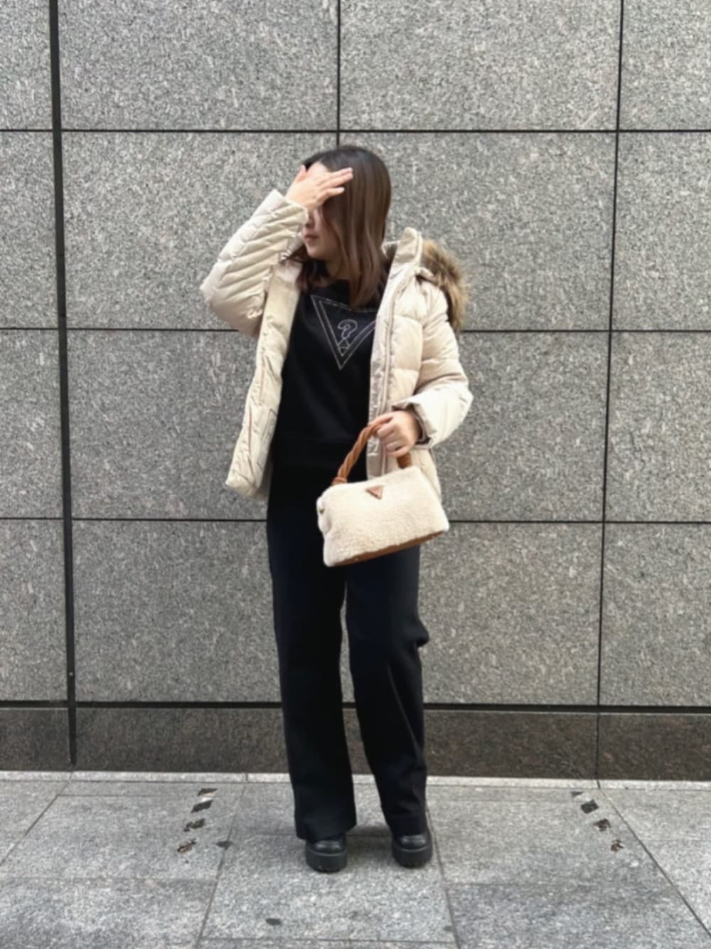 Tops𓂃꙳⋆ キラキラロゴトレーナーブラックです✦.* ロゴ部分のレースデザインとストーンのキラキラがとても可愛い⋆˚✿˖° 丈感は短めなのでハイライズのパンツととっても相性がいいです¨̮⃝ Outer𓂃꙳⋆ リアルダウンです.ᐟ ベルトがついていてくびれ感でスタイルがよく見えるデザインです.*・゚ ダックダウン80%ですので保温性、防寒性はピカイチです☑ 撥水加工で雪の降る日も安心☃︎ フード、ファーは取り外しできますのでコーディネートに合わせて付け外しください⋆˚✿˖° Denim𓂃꙳⋆ ハイライズ ベルト付きのブラックワイドパンツです♪♪ ストレッチで履きやすく綺麗なライン 長さも長すぎずちょうど良い丈感なので合わせやすく また、黒なのでトップスにも困らない素敵な一着です⚐˒˒ Bag𓂃꙳⋆ 可愛いボアのまるまるバッグ♪♪ ショルダーとハンドバッグの2Wayでハンドバッグの持ち手部分は取り外し可能です୨୧ コンパクトながら長財布も入る大容量で 今冬のリピーターアイテムになること間違いなし.ᐟ.ᐟ