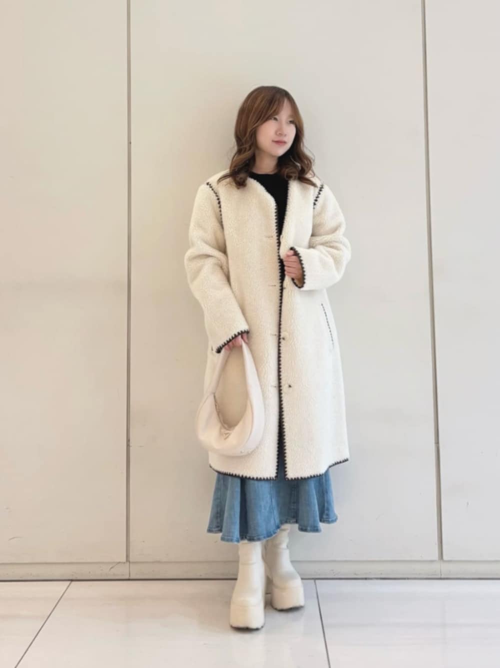 コートは長過ぎない丈感で、身長を問わずどなたでもきれい着こなせます! シンプルなデザインなので大人っぽく、着回しもしやすいです😊 トップスはブラックとホワイトの2色展開。 ストレッチのきいた素材で体にフィットして、秋冬でもボデラインをきれいに見せてくれます🤍🖤 スカートは美脚効果バツグンのシルエットです! デニム生地でいろんなトップスに似合います⭕️ ハンドバッグは小ぶりですが、柔らかくて軽い生地で、スマホやカードケースなど必要な小物をしっかり収納できます🧸 ぜひチェックしてみてください🎀