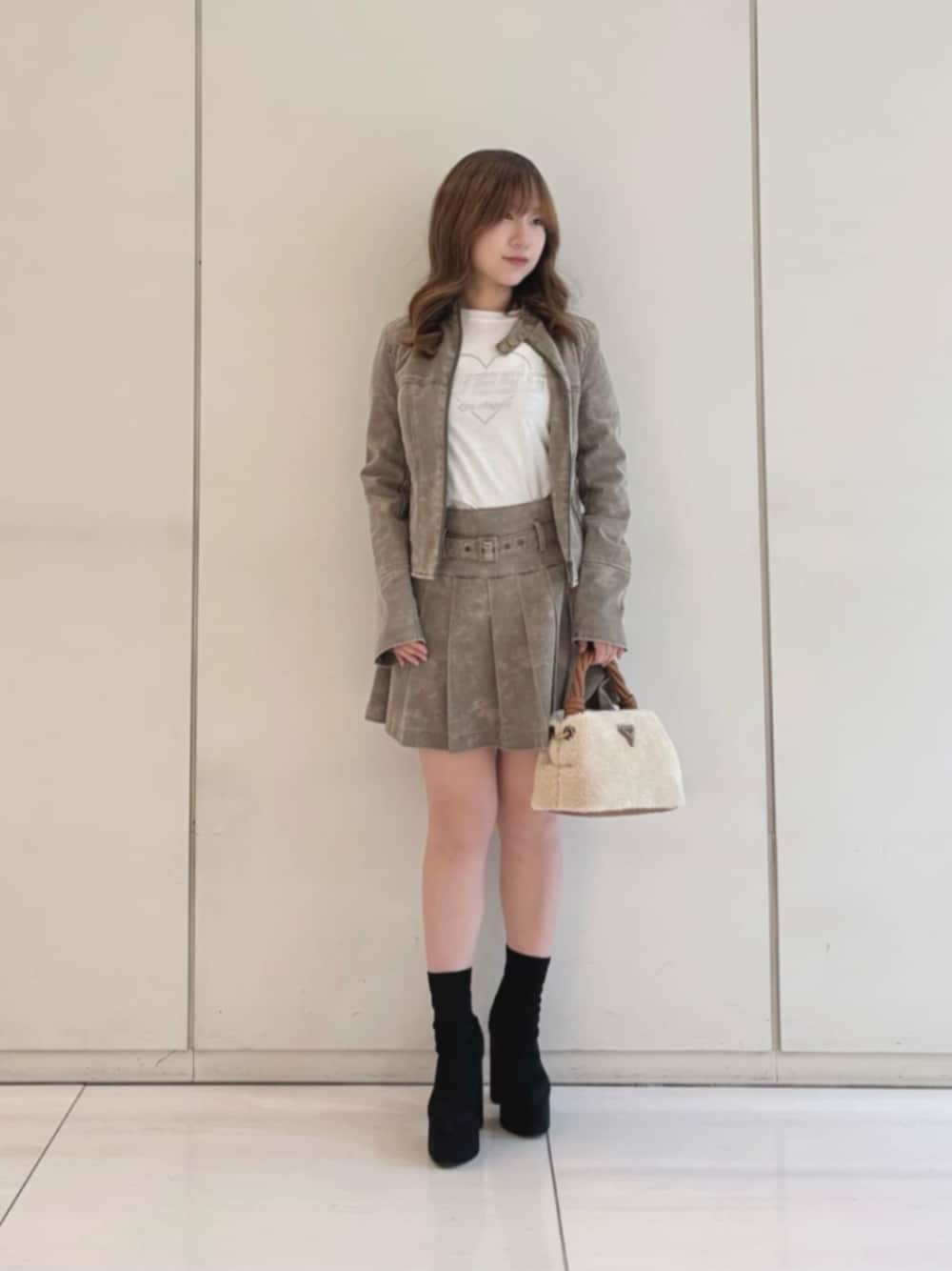 ジャケットはウエストを絞ったデザインなのでシルエットをキレイに引き立ててくれます😍 スカートはハイウエストで、丈感も短めなので脚長効果抜群です⭕️ Tシャツはキラキラで可愛く、ブラック・ホワイト・パープル3色展開🖤🤍💜 ハンドバッグは秋冬感たっぷりの生地でカラバリも豊富✨アウターとも合わせやすいです🧸 ぜひチェックしてみて下さい💋