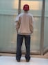 グレーのハーフジップスウェットを主役にした、ストリートカジュアルスタイル。 シンプルながらも首元のジップデザインがアクセントになっていて、ジップを少し開けることで首元に抜けが生まれ、重く見えがちなグレートーンでも軽やかな印象に。 パンツは濃いめのインディゴデニムを合わせ、トップスの淡いグレーとのコントラストをはっきりさせています。程よく太さのあるシルエットで、裾に自然な溜まりができることで、ストリートらしい空気感を演出。全体のバランスも取りやすく、どんなトップスとも相性のいい万能な一本です。 キャップで色を入れコーデの中で唯一しっかり色を効かせたポイント。ベーシックな配色の中に差し色を入れることで視線が上に集まり、スタイリング全体が単調にならず、ストリート感のある雰囲気に仕上がっています。 全体として、 シンプルなアイテム同士を組み合わせながら、色味とシルエットでしっかり雰囲気を作ったコーデ。 派手さはないけど、バランスと空気感で見せる、日常使いしやすいストリートスタイルです。