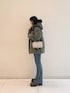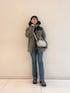 アウターはフードとファーが取り外し可能なのでいろんやアイテムとコーディネートできます♪首元のボタンを閉めると防寒性がより高まります!フェイクレザーとマットなナイロン素材の組み合わせがコーディネートの主役になりそうなデザインです☺︎ インナーには透かし編みが特徴的なクルーネックのニットを着用しています☺︎ややフィット感のあるトップスはメンズサイズのアウターと合わせるとメリハリが出るのでオススメです! フレアデニムはシーズンレスなカラーと幅広いコーディネートで使えるデザインです!ストレッチがあまりきかない分キレイなラインをキープしてくれます👖 ハンドバッグはミニサイズですが、マチと内側のポケットで収納力もあります☺︎ショルダーストラップで肩掛けしたり、ストラップなしで持つのもかわいいです👜エナメル素材のアイテムは持っているだけでコーディネートのオシャレ度がアップするのでオススメです♪