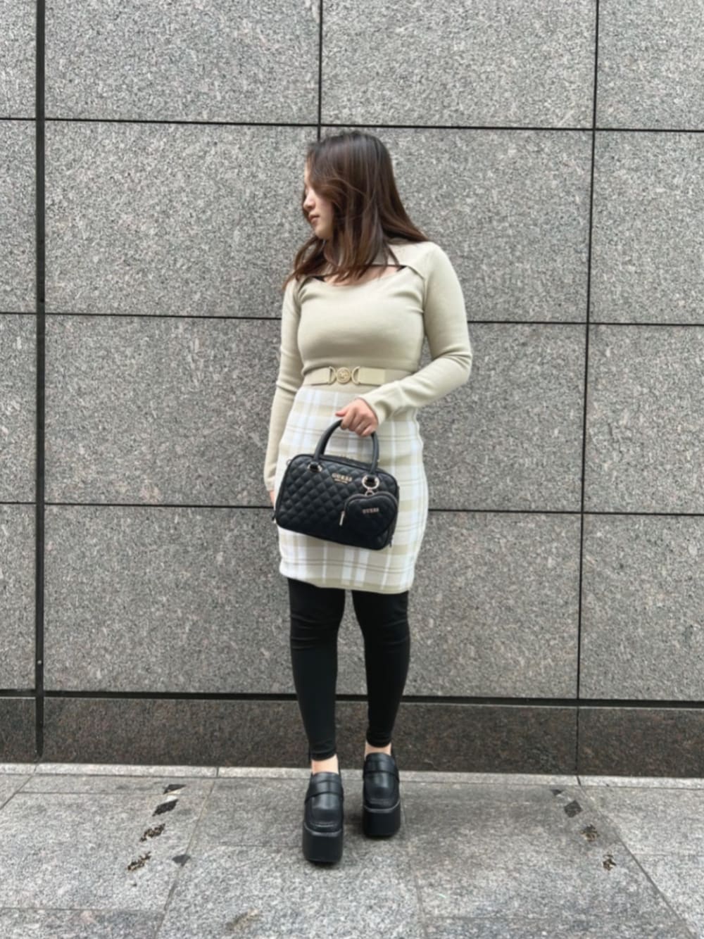GUESS JAPAN(GUESS JAPAN)のワンピース「LS Coraline Sweater Dress ワンピース ドレス」を使ったコーディネート
