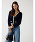 【Tops】 Sサイズ着用 1枚でオシャレなカーディガン~♪ ネイビー×ホワイトが可愛い♡ ショート丈なのでハイウエストデニムと相性◎ 【Denim】 24インチ着用 さらっとした履き心地のデニム✧︎*。 ストレッチはゼロですが体型拾わず履きやすい♡ 【Bag】 もこもこバッグ~♡ ほどよい大きさで使いやすさ◎ ***ECサイトで完売商品でも、店頭でご用意がある場合もございます♥お店に電話、またはインスタのDMよりお問い合わせ下さいませ♡ ***