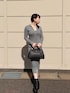 長めニットワンピ 襟付きなのでキリッとスタイリッシュに見えます。タイトですが動きやすく女性らしさもありつつ機能的です! バックは台形で白のステッチが可愛く、口も大きく開き、収納機能も多くてとても使いやすいです^_^