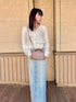冬のモコモココーデ! ショート丈のモコモコカーデはとてもスッキリしたホワイトで可愛いく、ロングスカートはハイウェストで後ろにスリットも入っていてシルエットが綺麗です^_^ 低身長カバー&脚長交換抜群です。 バックは優しい大人ピンクでキルティングが可愛いです!