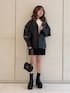 レザージャケットは大きめのシルエットなので体型をカバーしてくれます♪ ボディラインを見せたくない方におすすめです😚 トップスはシンプルなデザインなのでいろんなコーデに合わせて着れます🖤 スカートはキラキラしたボタンが付いて、シンプルなコーデのアクセントになります✨ バッグはコンパクトで可愛いです♪ 携帯や鍵、カードケースなど小物をしっかり収納できます🔅 ぜひチェックしてみてください🥳