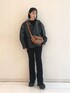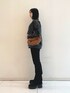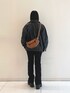 フェイクレザーのジャケットは全体的にオーバーサイズで柔らかな素材なのでリラックスしてきていただけます!カジュアルアイテムとの相性も良いですが、首元の空きで抜け感が出るので、ワンピースなどのドレッシーなアイテムとのコーディネートもオススメです☺︎ インナーには透かし編みが特徴的なクルーネックのニットを着用しています☺︎ややフィット感のあるトップスはメンズサイズのアウターと合わせるとメリハリが出るのでオススメです! ハンドバッグは長さ調節のできるショルダーストラップ付きです!間口は広く、柔らかい生地感で荷物の出し入れもしやすいです♪シンプルなデザインでユニセックスで使っていただけます☺︎