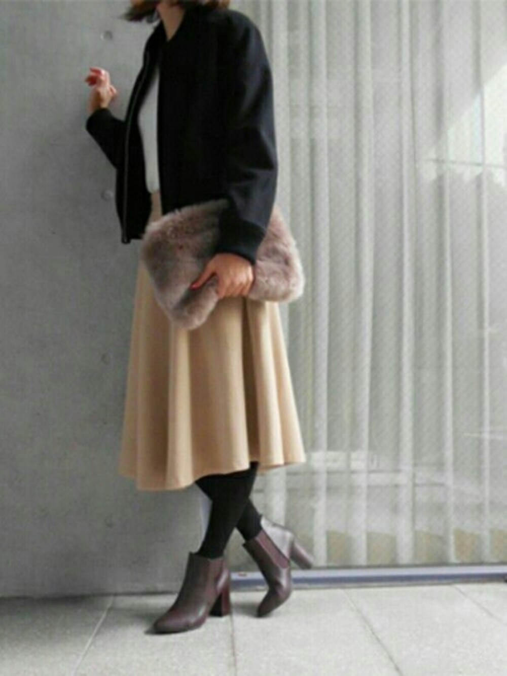 ブルゾンもフレアースカートとブーティを合わせてキレイめにまとめてみました♪