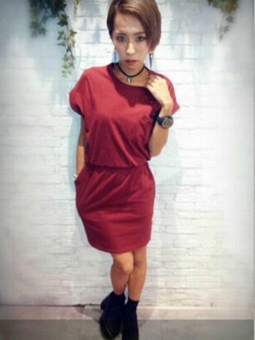 1枚で秋っぽいワインをチョイス♪肌寒くなったらレザーライダースジャケットと合わせるのがオススメです。
