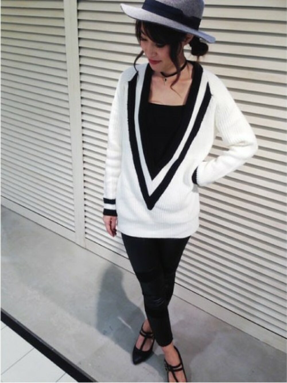 切り込みの深いVラインが可愛いニット♪フェルトHATがアクセント!