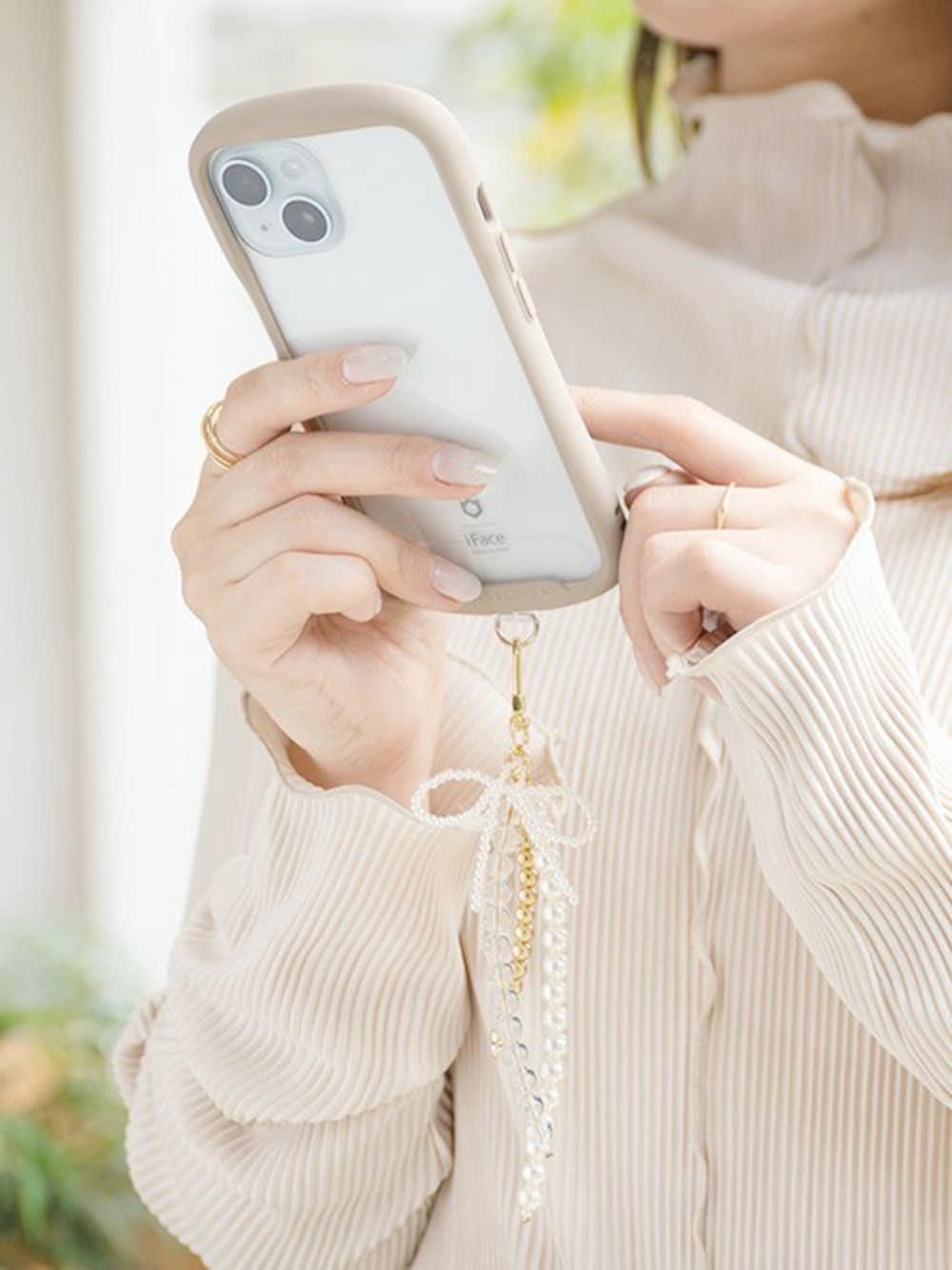 さりげなく輝く上品なチャームストラップ。「リボン/パール」はゴールドとホワイトで構成されたパーツで大人っぽく、リボンが流行感のあるリボンがアクセントになります。