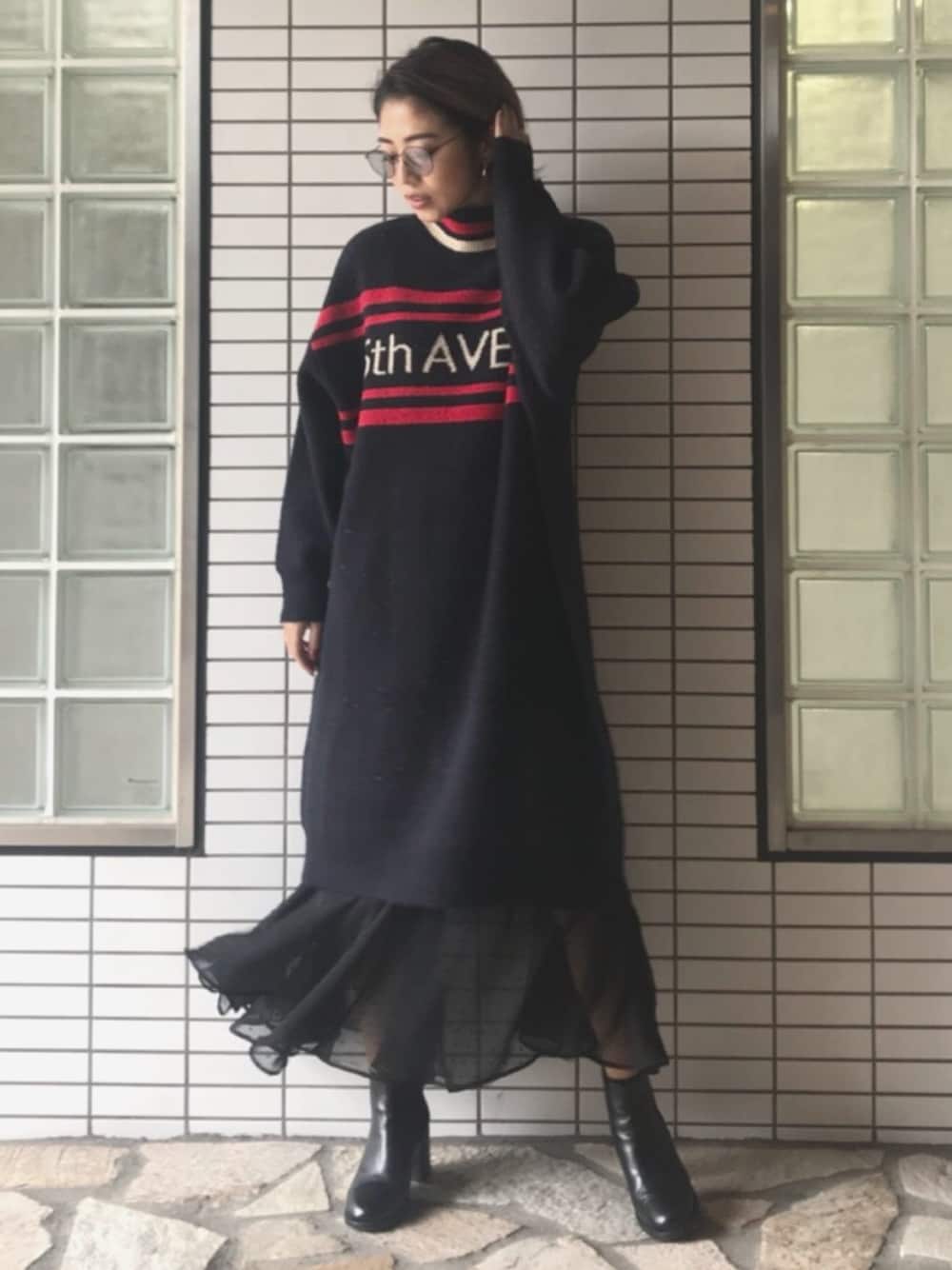 今井華のワンピース「ジャガードBIGニットワンピース」を使ったコーディネート