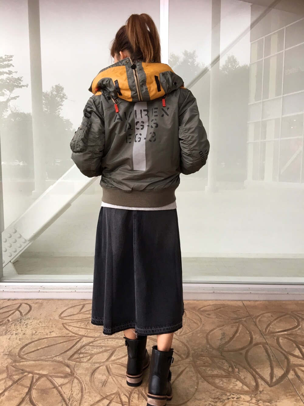 こんばんわ、こんにちは( ・ᴗ・ )✨ ご覧頂きありがとうございます。 今日はDEPOT限定アイテムを 使ったコーディネートです! こないだ着たデニムのロングスカート! モックネックのロンTはシンプルなので 着回しが効き、着心地◎です💗 そしてMA-1のREMODEL!! 存在感バツグンのこの1枚( °Д°)💕 AVIREXらしさがたくさん 盛り込まれてますよー!! フードは取り外し可能です😉 AVIREX DEPOT入間へお越し下さい🎀 お待ちしております⭐️⭐️