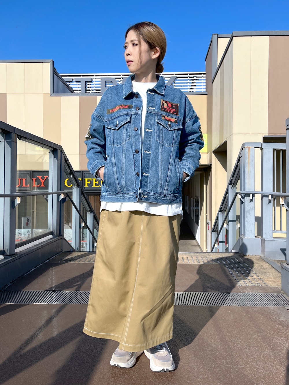 ご覧頂き有難う御座います🤩 春らしくデニムジャケットで🌸🐝 〔783-2255602〕 サイズ少しゆったりです!! ロンTは、オーバーサイズな作りで ゆったり楽ちん!! スカートは、ウエストの後ろ部分が ゴムになってるのでノンストレスで着れます🫡⭐️ 通販可能です⭕️ AVIREX DEPOT入間 📞04-2902-5073