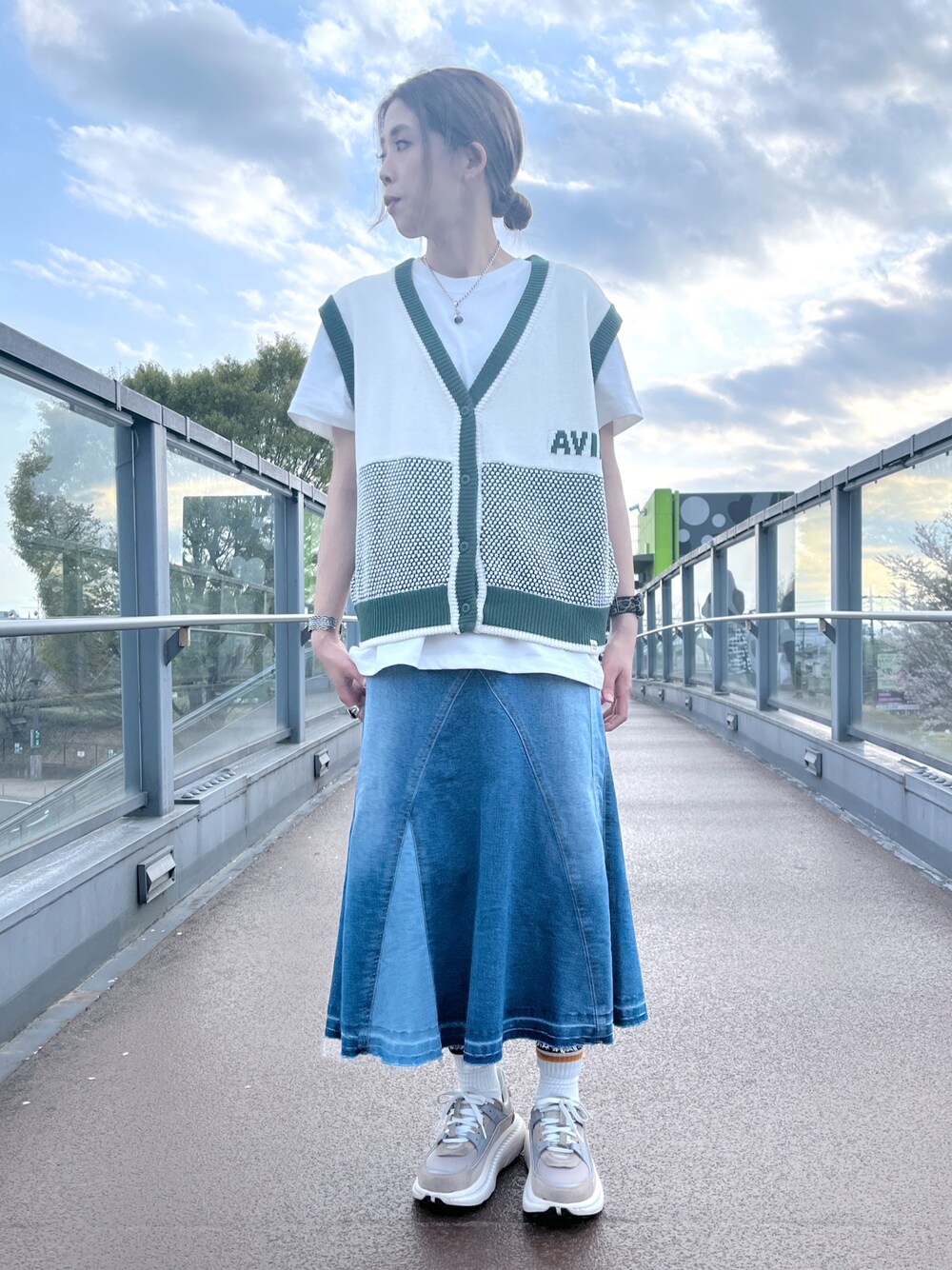 WEB&DEPOT限定🧸 半袖Tシャツにニットベストで レイヤードコーデです🌟 半袖TはFREEサイズでも 大きめに着れました‼️ ニットベストは薄手で 春仕様になってます‼️ サイズはざっくりです🙆♀️ スカートはストレッチ素材で ウエストの後ろ部分ゴムなので 履きやすいですよ‼️ Tシャツ/F ニットベスト/F スカート/S 通販可能です⭕️ AVIREX DEPOT入間 📞04-2902-5073