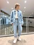 WEB&DEPOT限定🐻 デニムのセットアップコーデ🌸 デニムのセットアップ大人気です🙆♀️✨ カラー展開も豊富です! インナーのTシャツは、 バックデザインのクマちゃんが ポイントです⭐️ 通販可能です⭕️ AVIREX DEPOT入間 📞04-2902-5073