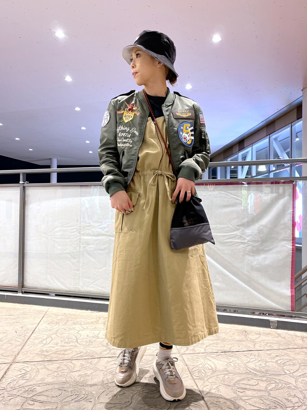 WEB&DEPOT限定アウター⭐️ バックスタイルの刺繍が インパクト大です‼️ オーバーオールスカートは サイズ大きめで、Sでも十分でした🫡 バケハはリバーシブルです‼️ アウター/F インナー/F オーバーオールスカート/S バケハ/F バッグ/F 通販可能です⭕️ AVIREX DEPOT入間 📞04-2902-5073