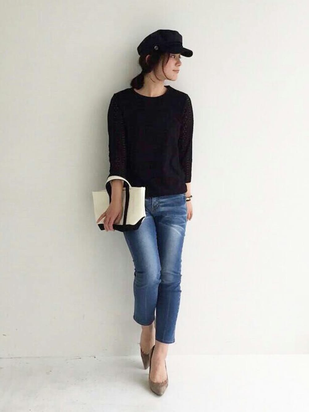 画像じゃちょっと見にくいですが… このレーストップスは、ボディ部分にカットソーの裏地がドッキングされていて透けないから、インナー選びにも悩まない、優秀アイテム!着心地もTシャツみたいで驚き。 デニムやマリンキャップでちょっとハズして着こなすのが気分です♪