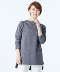 秋に近づいてシックな気分 ポコポコと表情のあるカットソーで作った、華やかなトップスはいかがでしょうか? スタンドカラーのボートネックがクラシカルで大人な雰囲気 艶感のあるジョガーパンツを合わせて、ちょっと外したのがポイントです。